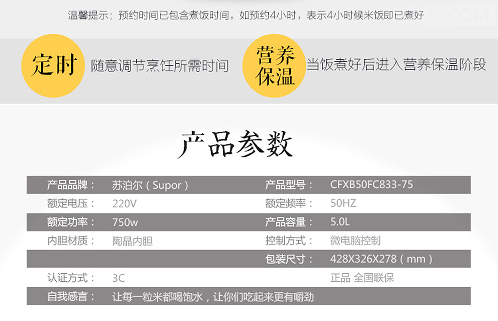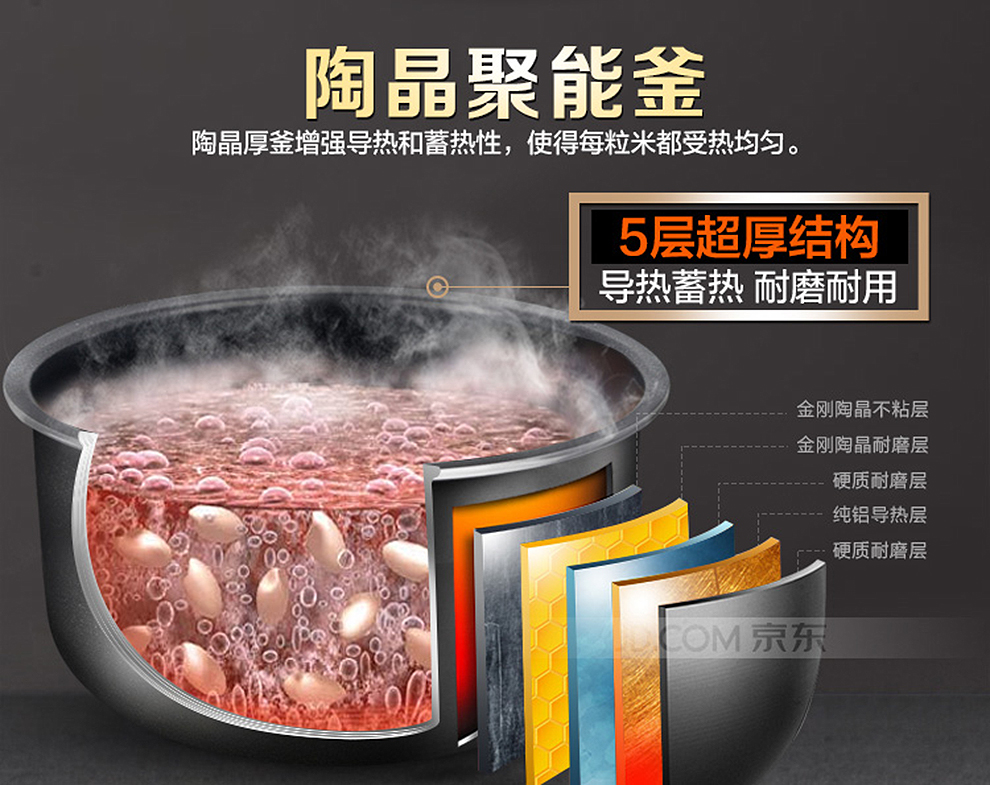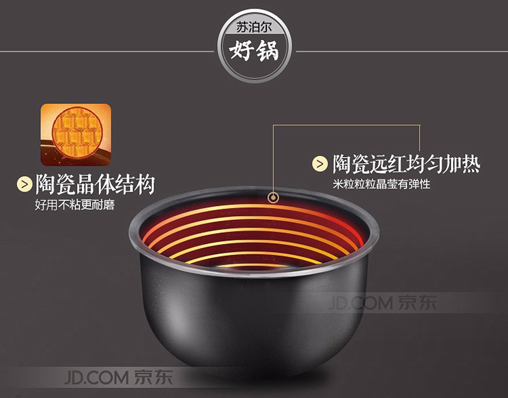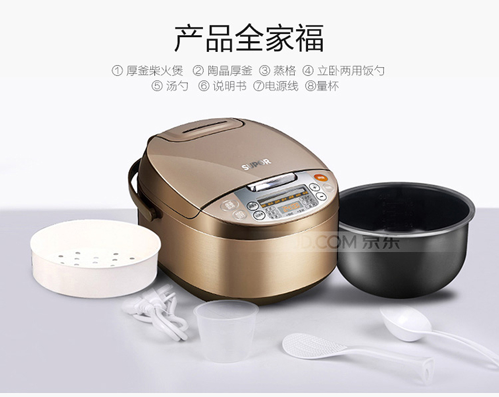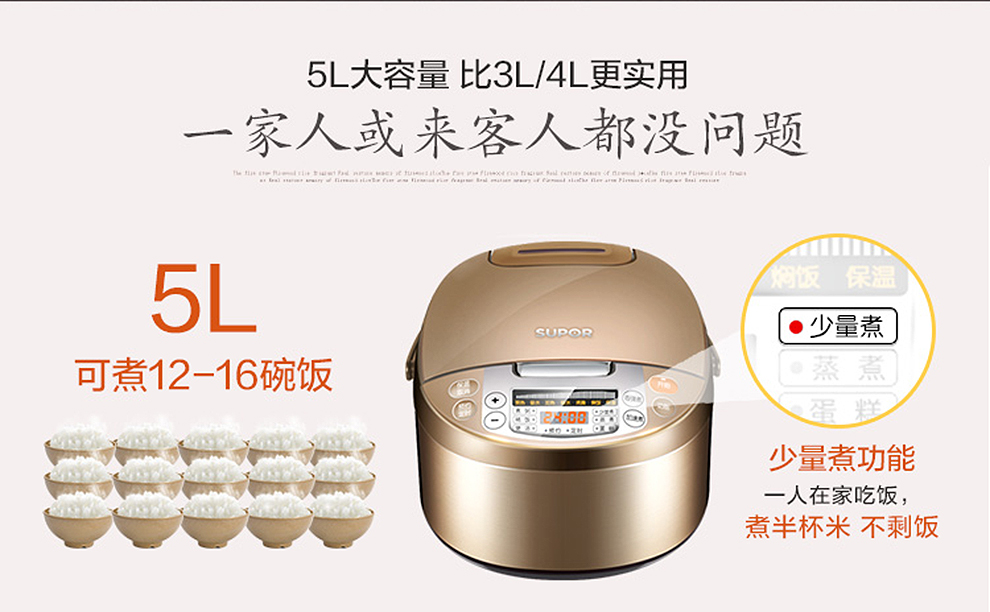 商品名称:苏泊尔(SUPOR) 电饭煲 5L大容量陶晶厚釜内胆 多功能家用电饭锅金属拉丝机身 CFXB50FC833-75 5L可用4-6人